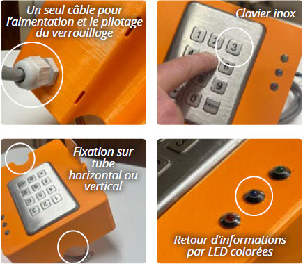 Il est compatible avec la norme ISO 14443 pour la lecture de badges RFID et dispose d’une batterie interne pour le maintenir en fonctionnement après l’extinction de l’alimentation de l’équipement portuaire. Il peut se connecter en Wifi ou en 4G (carte sim intégrée).